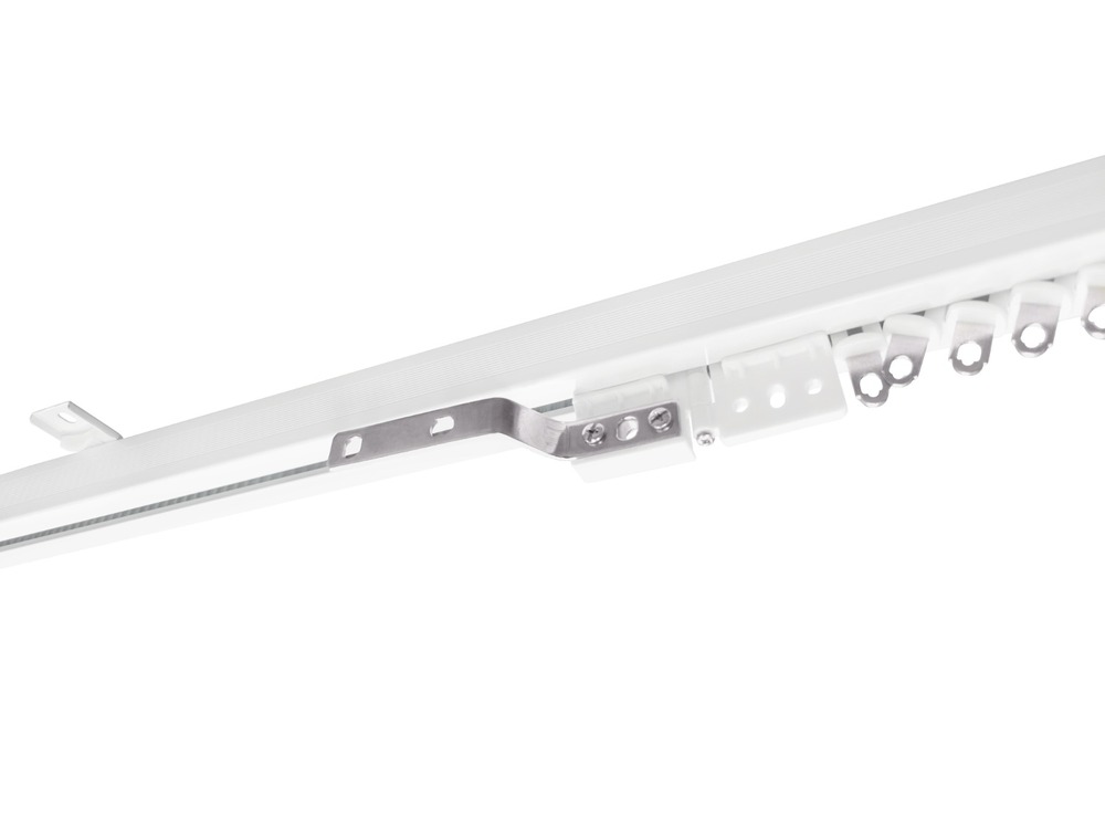 kompletny karnisz: aluminiowy profil w kolorze białym, malowany proszkowo, pas transmisyjny, końcówki, ślizgi