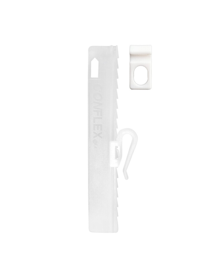 Zaczep MICROFLEX 95 mm jest produktem składającym się z dwóch części: podłużnego elementu wszywanego w zasłonę/firanę posiadającego ząbki oraz haczyka który montowany jest w prowadnicy pozwalającego na dostosowanie wysokości firany/zasłony względem profilu/rury karnisza. System pozwala na prosty montaż/demontaż poprzez wyciągnięcie haczyka z oczka zawieszki w celu wyprania tkaniny. Wszycie systemu microflex w zasłonę/firanę pozwoli na regulację wysokości ich zawieszenia i da możliwość zasłonięcia profilu karnisza.