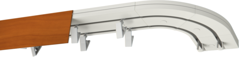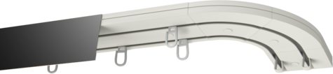 Proponujemy również szyny z łukami - rozwiązanie to daje możliwość zamontowania konstrukcji w narożnikach: wewnętrznych lub zewnętrznych. Łuki dają nam również możliwość przygotowania szyn tak, aby zasłona montowana na suficie dotykała ściany okiennej. Dzięki temu jesteśmy w stanie zasłonić okna tak, aby po bokach nie występowały prześwity.