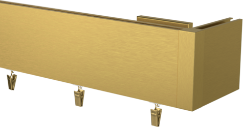 Karnisze Prestige montowane do ściany są oparte na profilach aluminiowych o wysokości 8 cm i wspornikach pojedynczych lub podwójnych. Karnisze nadają się idealni do pomieszczeń gdzie karnisz i materiały na nim zawieszane mają pełnić funkcję ozdobną.