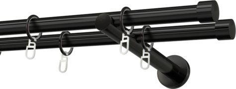 Karnisz czarny Valleo agrafka Podwójny prosty ścienny przedłużony