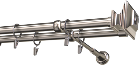 Karnisze metalowe podwójne stosowane są gdy pragniemy powiesić nad oknem zasłony i firany.