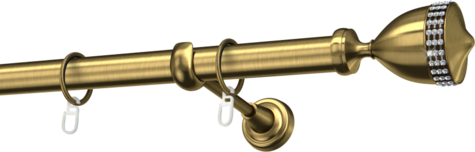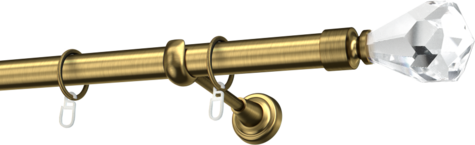 Karnisz metalowy pojedynczy fi25mm Cristal agrafka Koloru mosiądz antyczny na wsporniku klasycznym