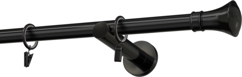 Karnisz czarny pojedynczy metalowy Apollo agrafka Pojedynczy prosty ścienny