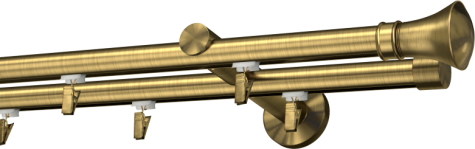 Karnisz podwójny szynowy, mosiądz antyczny Rullo