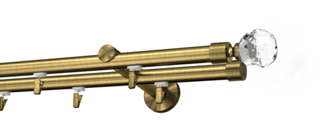 Karnisz podwójny szynowy, mosiądz antyczny Cristal kula Podwójny prosty uniwersalny ścienny