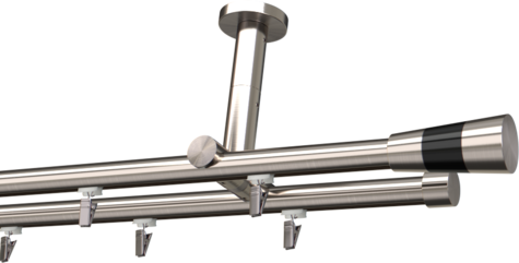 Karnisz sufitowy podwójny Tobi kolor stal nierdzewna Podwójny uniwersalny sufitowy przedłużany