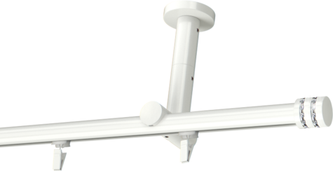 Karnisz sufitowy podwójny Corso cristal Wspornik z przedłużką. Profil po zamontowaniu znajduje się 13 cm od sufitu.