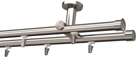 Karnisz sufitowy podwójny Duo Profil karnisza o okrągłym kształcie o średnicy 19 mm