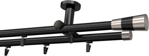 Karnisz sufitowy podwójny czarny Apollo Podwójny uniwersalny sufitowy